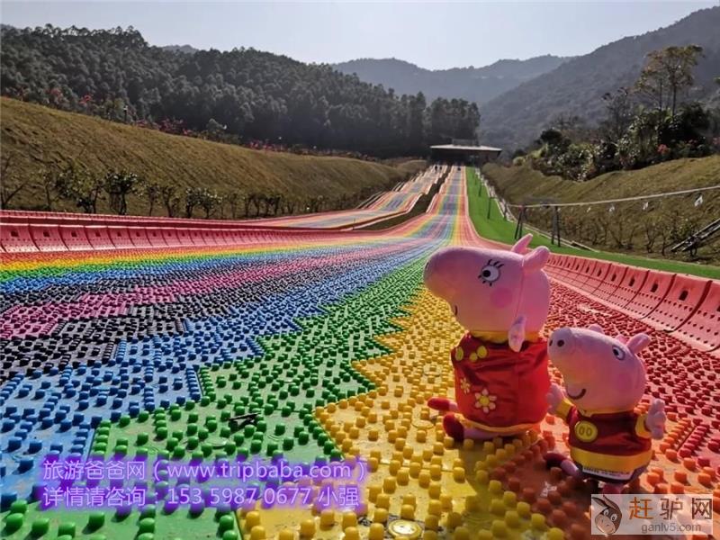 七种五彩斑斓色彩,铺设而成的彩虹旱滑跑道!远远眺望,似一道彩虹卧于美丽的十里蓝山。坐上橡皮船,在落差十几米,长度几百米的五彩滑道上!听着耳边狂风呼啸,以及旁边赛道他人的高声尖叫欢迎www.ganlv5.com。要多刺激有多刺激~